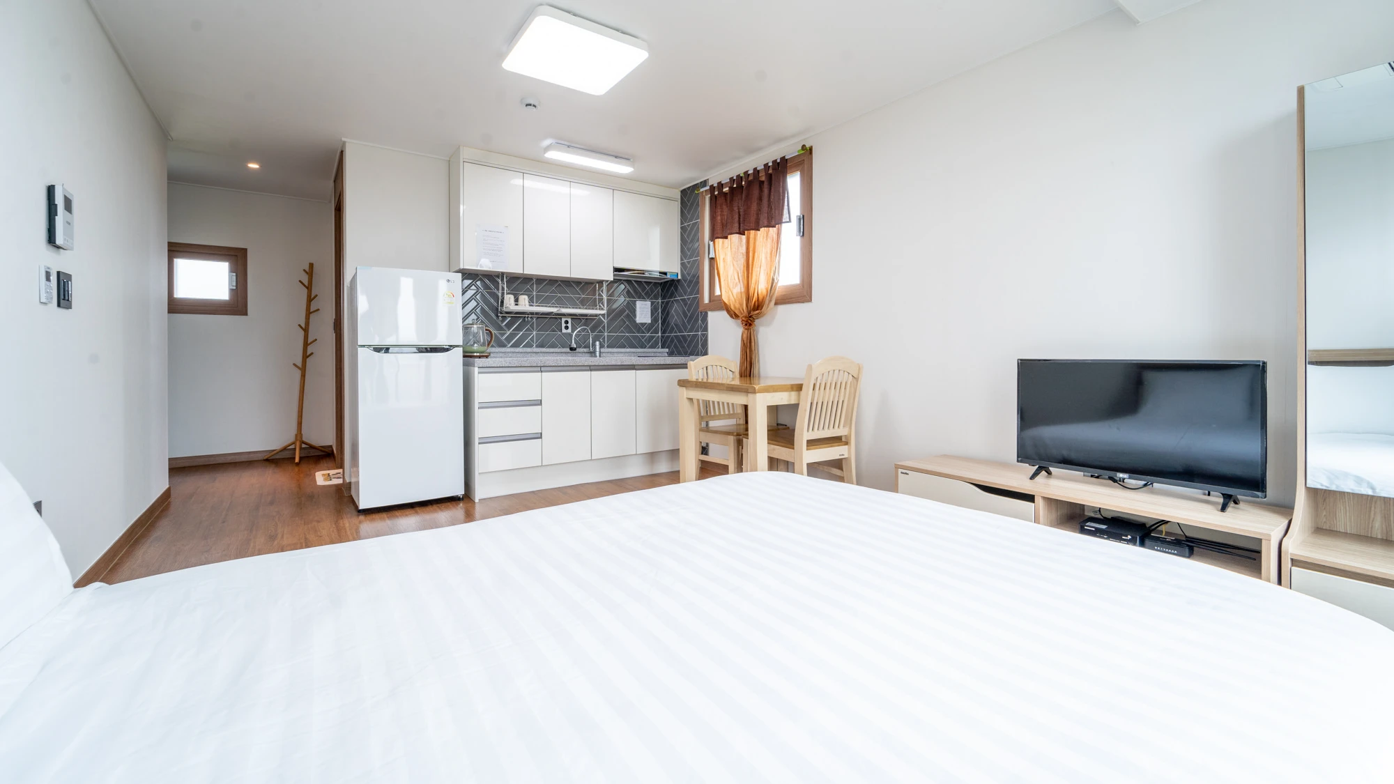 - 집기품목 : TV, 전자레인지, 드라이기, 냉장고, 바디워시, 샴푸, 와이파이, 에어컨, 전기밥솥, 커피포트, 취사시설/도구, 세면도구, 타월, 침대방, 욕실용품